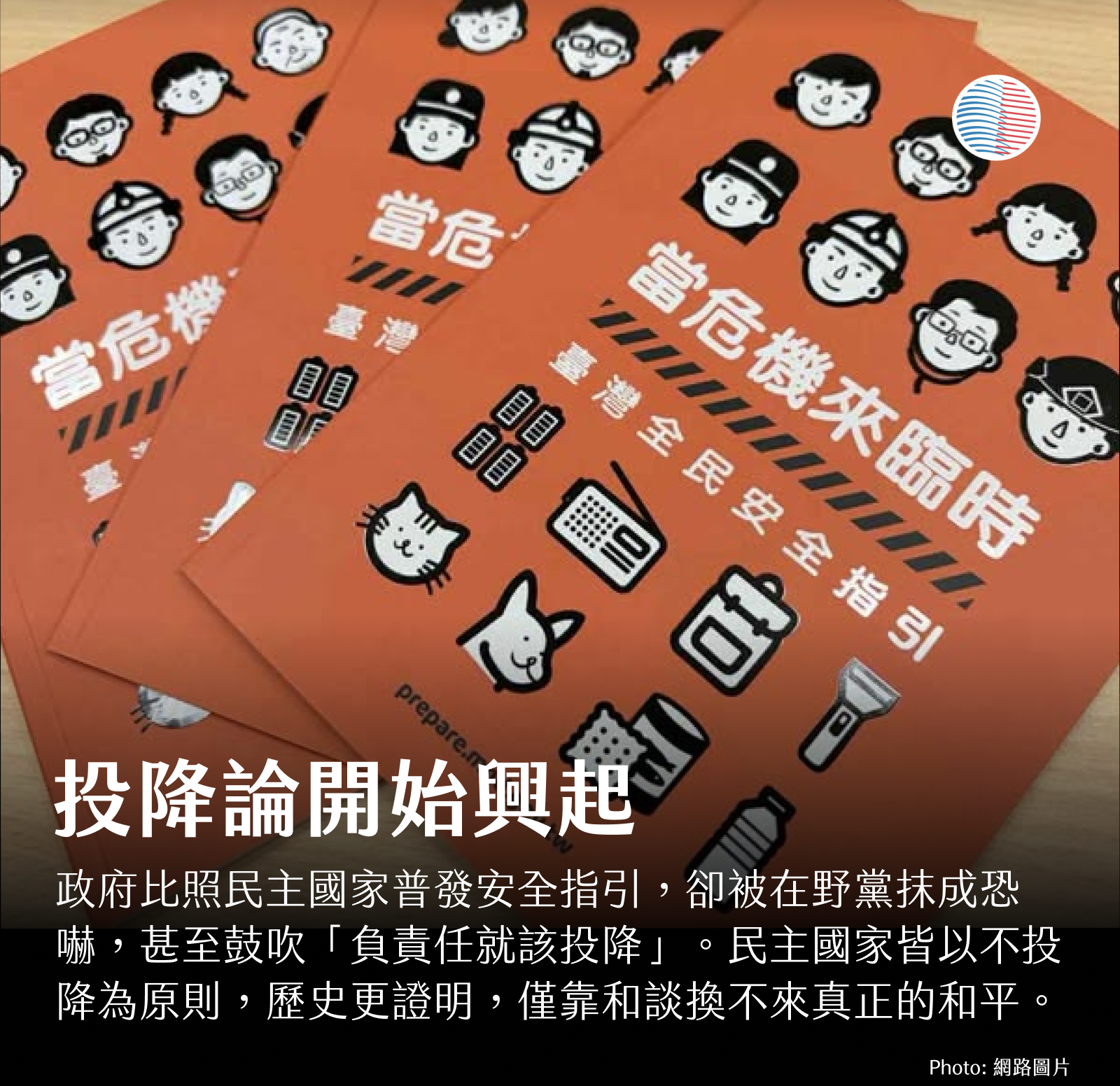【面對侵略,政府絕不可能投降】 台灣政府最近決定要普發《台灣全民安全指引》,此舉引發在野黨一陣批評,許多人批評這叫做散播恐懼。奇怪了,那北歐國家、日本、許多歐洲國家都是政府每年更新安全指引的,他們政府也是在散播恐懼嗎?事實上,民主國家的政府有義務告訴人民,面對大型災害(包括天災、人禍)的時候該怎麼準備、該怎麼保護自己,這是很簡單的道理。 然而,值得注意的是,國民黨前發言人李明璇等人特別拿手冊當中的一句話來質疑政府,就是關於手冊中的第19頁「倘若臺灣遭受軍事侵略,任何有關國家戰敗或政府宣布投降的訊息,都是假訊息」這句。 她認為,政府在恐嚇人民、把責任丟給地方,而且強調「不投降從來都不是一個負責任的政府該做的,守護人民才是」。 看到整段發言實在令人驚呆了。 中國國民黨從以前「拒簽不投降承諾書」,現在已經進化到主張「投降是選項」。以前很多人會講說「委屈的和平也是和平」,現在更進化到「負責任的投降」。幾乎整個國民黨完全紅統化,真是令人擔憂台灣民主的防衛能力。 這邊我們要強調幾件事情: 1、幾乎所有發放「全民安全指引」或類似指南的國家,都會強調面對外來侵略絕不投降。理由很簡單,自我防衛的意志是維繫和平的最關鍵力量,一旦你自己不想要防禦,那就是必輸。而這也是中國長期做心理與輿論操作最大的目標,就是要讓台灣人們覺得抵抗沒有用。 而許多侵略者發動攻擊之後所做的第一件事,就是到處散播防衛方已經投降的假訊息,還有努力煽動防衛方趕快投降。看起來中國的策略很成功,現在大聲嚷嚷要投降的人變得超多。 2、假設真的發生大型災害,甚至是戰爭發生的時候,「民防」大多數都會是地方政府的職責。本來就是地方政府的職責,哪會有什麼「把責任丟給地方」這種說法?你地方政府不作為才是廢弛職務好嗎!然而現在藍營執政的縣市這麼多,投降論再繼續漫延下去,這些人在重要時刻會不會通通當起間諜幫忙中國?這真的很令人擔心。 3、透過投降來保護人民的邏輯是有可能成立的,就是投降的那方是迫害人民,而受降的那方是解放者。納粹政府投降,德國人受解放。日本軍國主義政府投降,日本人受解放。但如果受降那方也是迫害者,人民只是換了一個暴政。例如東德被蘇聯佔領,就得不到自由。美國救援西柏林,才保住西柏林人民自由。 要保護台灣人民,真正該投降、該放棄武力的一方就是中國共產黨。 說真的,要達成台海和平真的非常簡單,就只需要讓中國共產黨放棄武力犯台的計劃就可以了。 現在所有台海不穩定、不和平的因素,都是來自中國。我們其他國家都不可能會去攻擊中國、更沒有要反攻大陸了,要高喊和平,當然必須要對著可能的侵略者去喊。 現在這麼多人對著台灣喊著要和平,是在喊什麼?就只是幫忙中國圍事而已。 尤其整天喊著「不要武裝」的這些人都是國家的叛徒。 4、教父的經典名言:誰叫你去談判的都是叛徒,這句話特別適用兩岸關係。 藍營的人們是不是都忘記大家最愛的蔣經國的名言:中國共產黨不可信,我方要採取的原則就是「不接觸、不談判、不妥協」。 看到了嗎?不妥協!然而,現在藍營眾多不孝又不智的徒子徒孫,先是接受委曲的和平也是和平,現在開始講負責任就是要投降,這些人的良心和基本的判斷力到底在哪裡? 委曲的和平是和平?與中國簽訂協議的圖博(西藏),只維持五六年的和平,然後是坦克車解放軍開進城,這叫做委曲的和平,你真的要嗎?或者也可以想想,眾多被送「再教育營」的人們怎麼辦?委曲的和平其實就是什麼都沒有,一點都不委曲了,因為你連表達委曲的自由也都沒有了。 哇塞,我們還沒談完「委曲的和平其實一點都不可能是和平」,國民黨就已經開始要「負責任地投降」。只能說台灣民主危機還真不是普通地大。